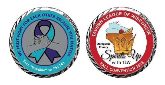 Custom challenge coins will be available for purchase during online registration, and on-site at the 2023 TLW Fall Convention and Tradeshow. Profits from sales will be donated to a to The Center for Suicide Prevention.